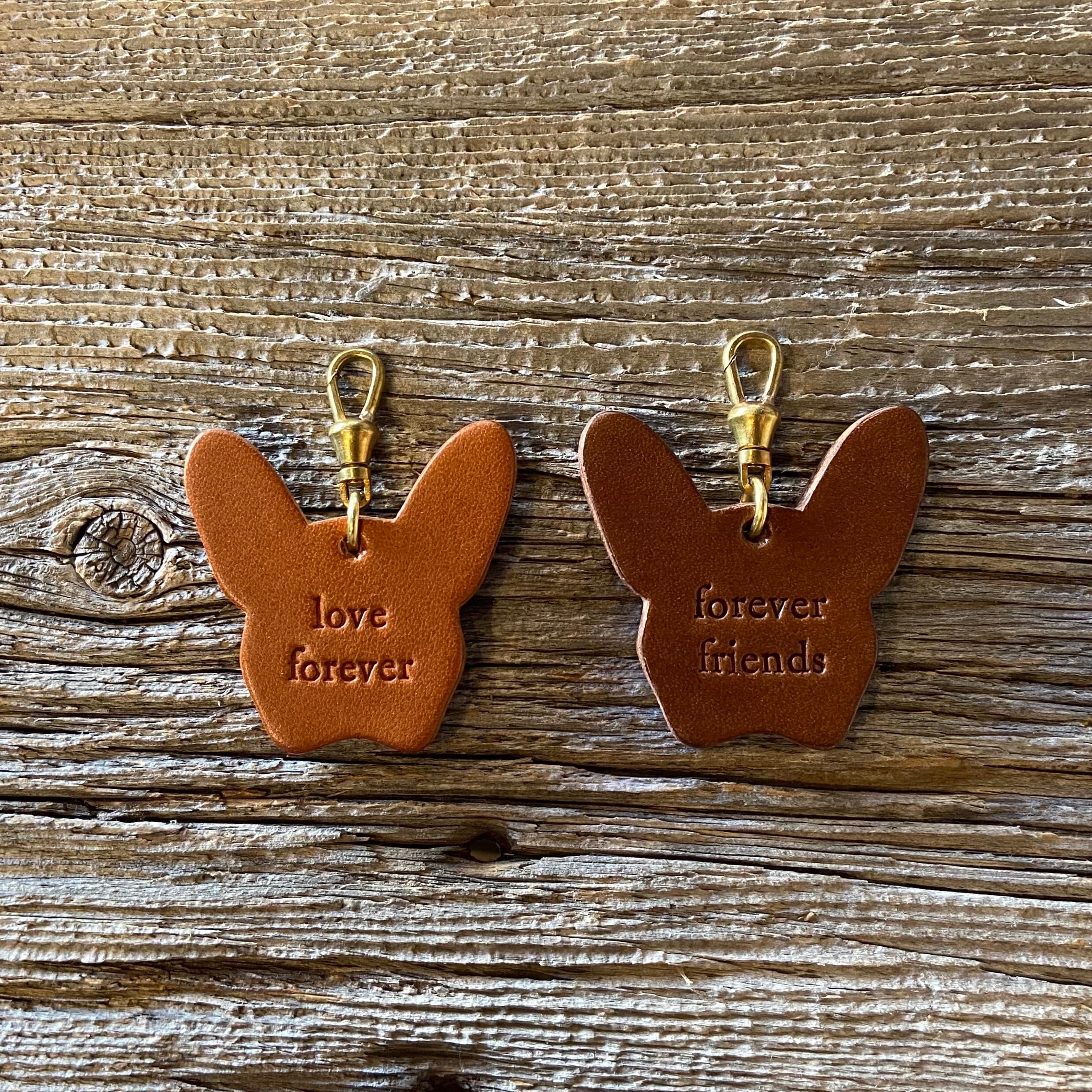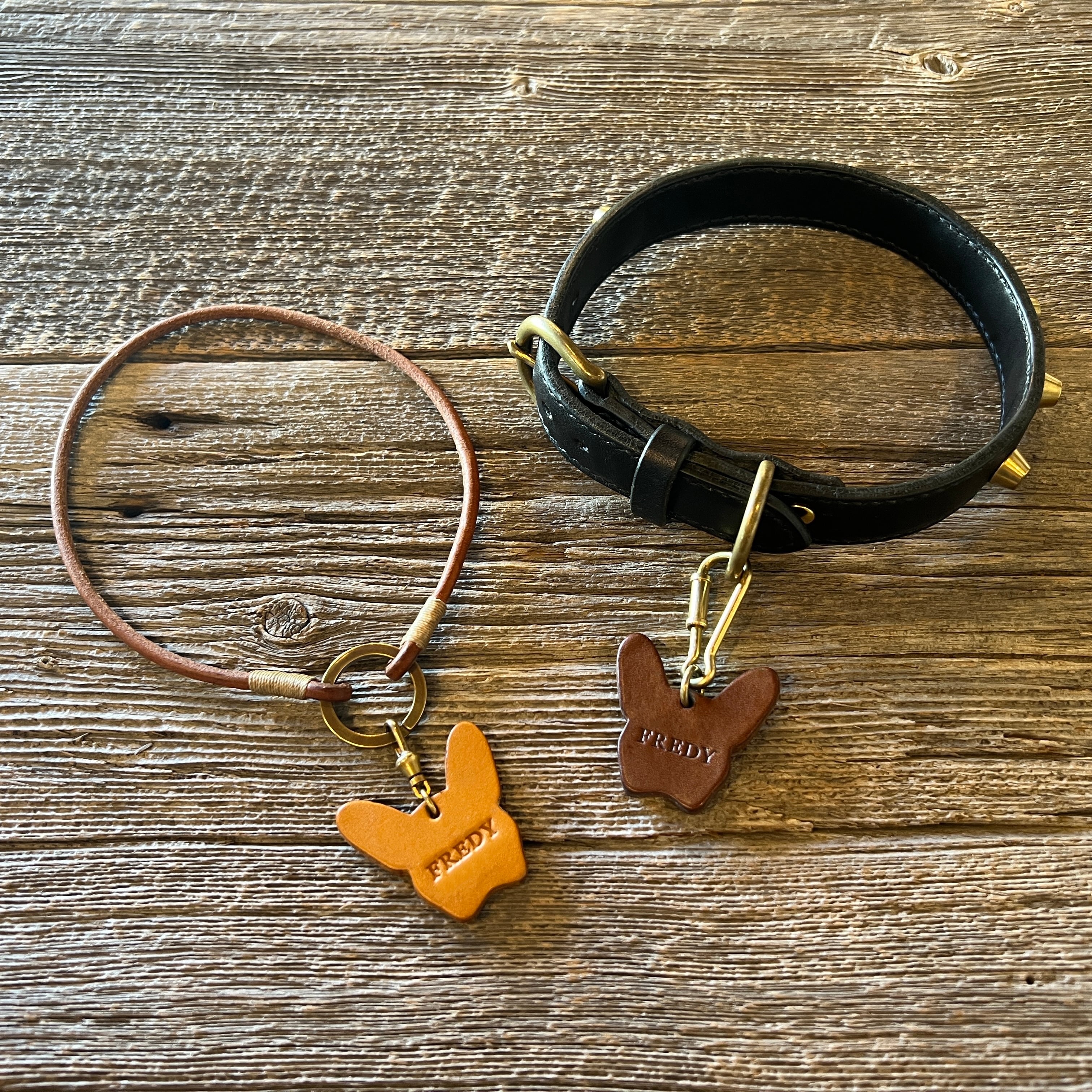 フレンチブルドッグの顔のシルエットをモチーフにした革製ドッグタグ(ミニサイズ)となります。